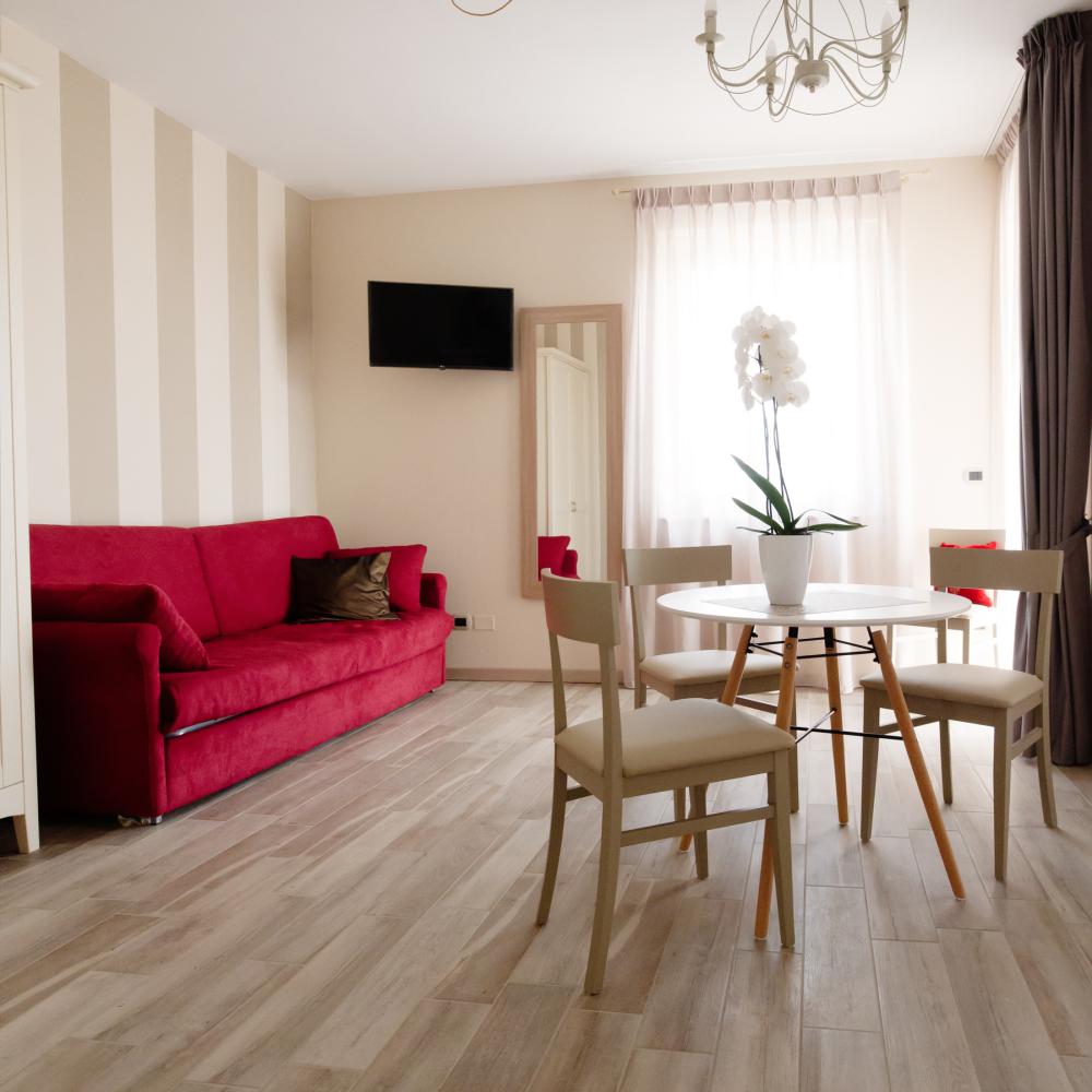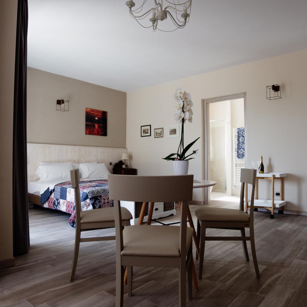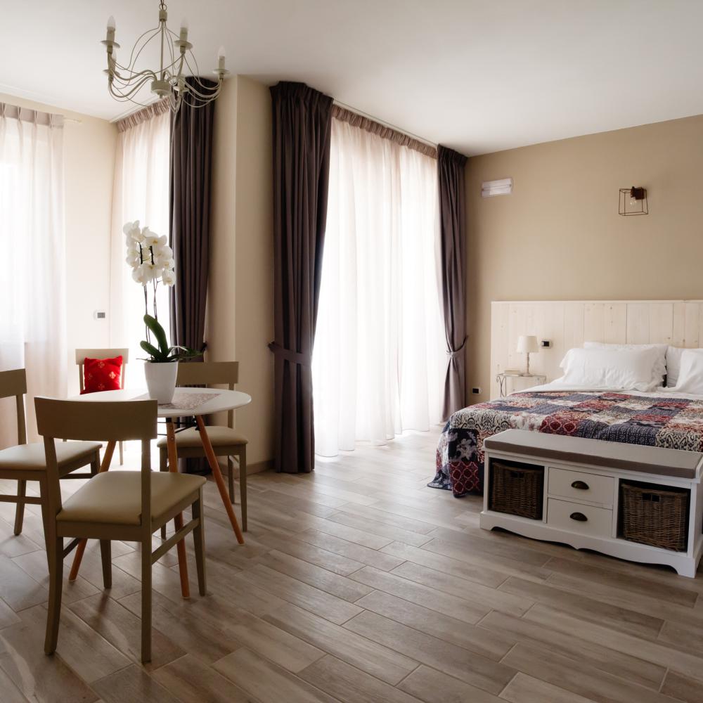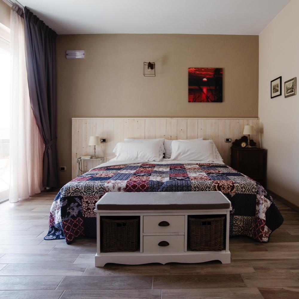 quadruple/family: two communicating bedrooms with air conditioning, one with a double or twin beds, the other with bunk beds, bath with shower and a nice balcony with view. Both rooms are equipped with satellite TV LED 32" and free Wi-Fi connection, the master bedroom also has a mini-bar and a balcony with view with charming loggia type architecture.