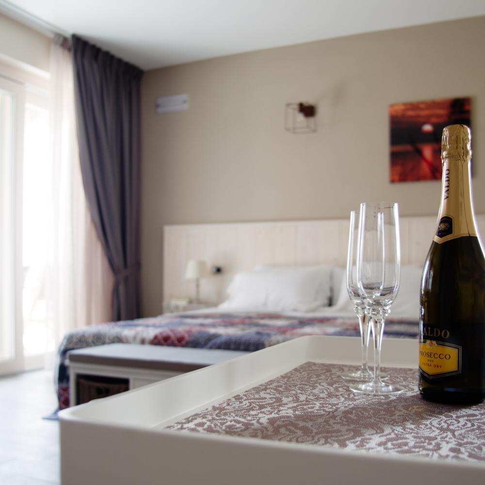 double or twin beds with air conditioning, private bath with shower, satellite TV LED 32", mini-bar, balcony with view, free Wi-Fi connection.